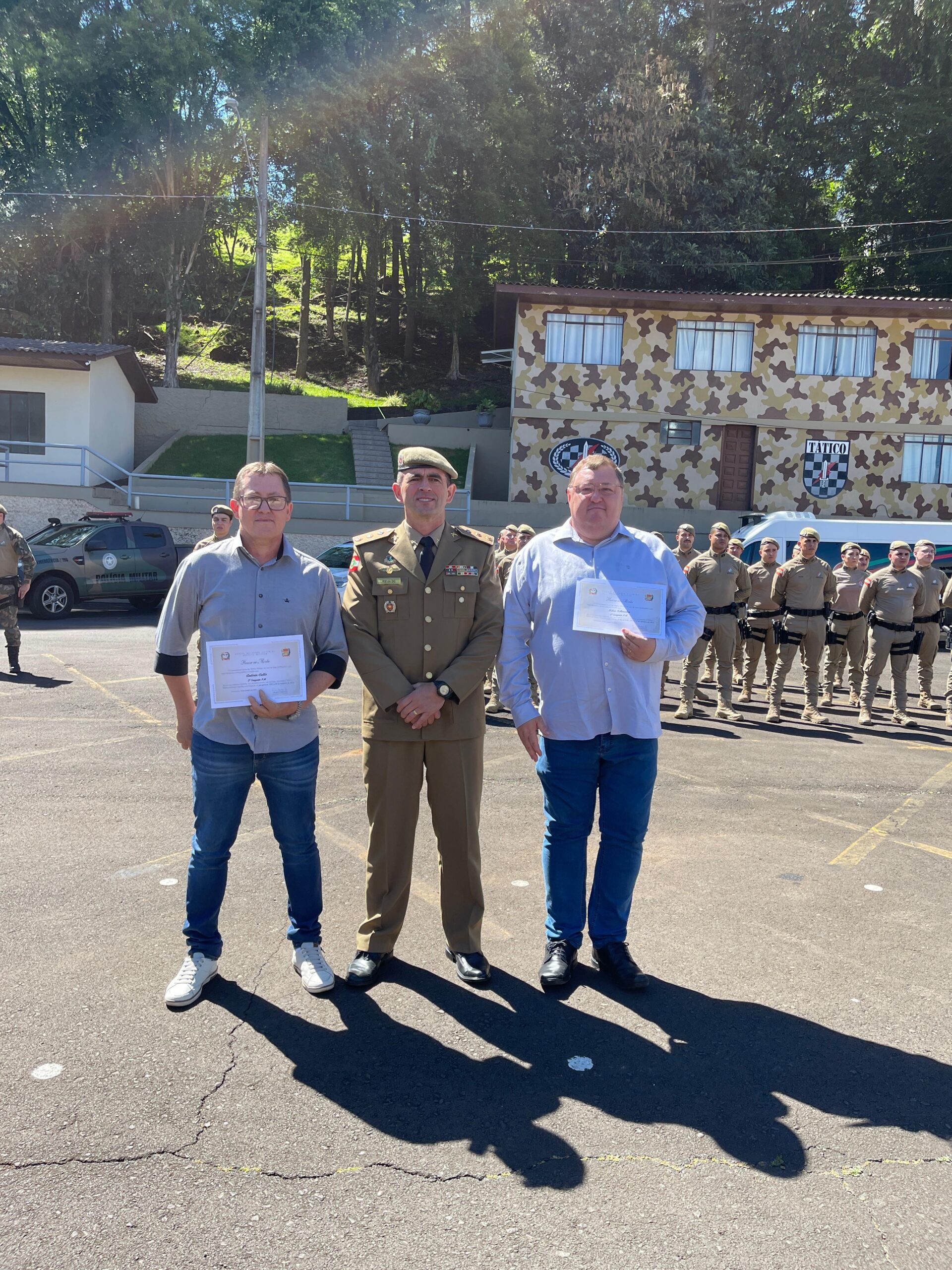 Também receberam o Diploma de Honra ao Mérito os policiais 2º Sargento PM Antônio Ciello e 2º Sargento PM Nilso Schneider, como reconhecimento pelos mais de 30 anos dedicados ao serviço policial militar.