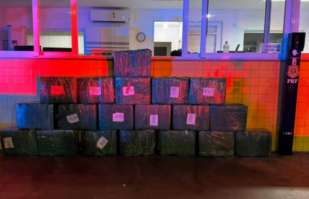 Com base na troca de informações entre as forças de segurança, os agentes localizaram e abordaram o veículo, que aparentava estar com excesso de peso. Durante a vistoria, os policiais encontraram os tabletes de maconha na caçamba da picape.