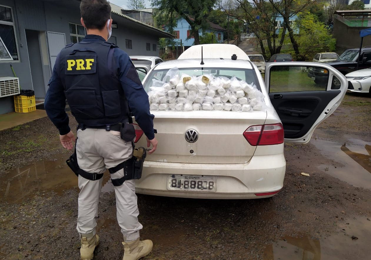 Os agentes realizavam fiscalização na entrada da cidade para coibir tráfico de drogas e armas quando abordaram um VW/Voyage placas de Chapecó. O motorista se contradisse sobre a origem e motivo da viagem, o que levou os policiais a fazer uma vistoria mais detalhada. Com auxílio de um cão farejador, a droga foi encontrada dentro do tanque de combustível do veículo.