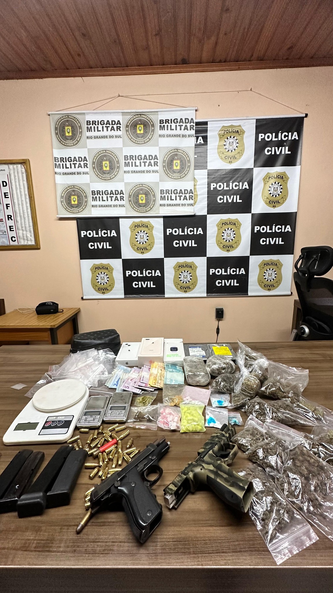 Ação conjunta resulta em três prisões e apreensão de armas e drogas em Passo Fundo