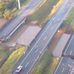 As fortes chuvas das últimas horas causaram prejuízos no acesso a BR-101. Em Jaguaruna, quem sai da cidade só consegue acessar o sentido Sul da rodovia. O sentido Norte encontra-se inundado neste momento. Já próximo ao Aeroporto Regional Sul Humberto Ghizzo Bortoluzzi, uma parte da pista principal da rodovia federal cedeu no sentido Sul, e por isso o trânsito está interrompido.
