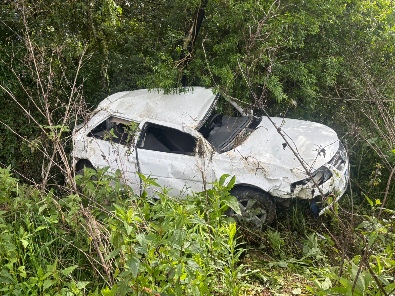 No local, foi constatado que um VW/Gol saiu da pista, capotou e colidiu contra árvores às margens da rodovia. O veículo transportava três ocupantes. Durante o capotamento, uma das vítimas foi arremessada para fora do carro, enquanto as outras duas conseguiram sair por conta própria.