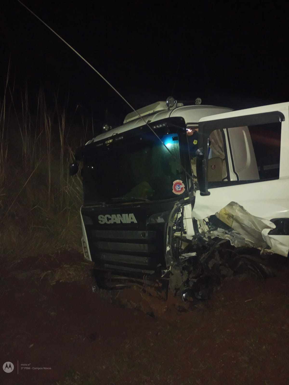 O condutor da carreta, de 30 anos, segundo informações de populares, havia deixado o local antes da chegada das guarnições. Na Ecosport com placas de Campos Novos/SC, que após a batida capotou e ficou lateralizada às margens da rodovia, estavam o condutor, de 19 anos, que morreu preso às ferragens apresentando múltiplas fraturas pelo corpo.