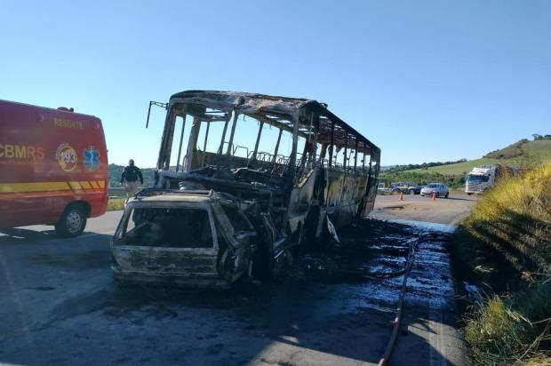 Conforme informações da rádio Solaris, um Volkswagen/Santana Quantum, de Caxias do Sul (RS) colidiu frontalmente com o ônibus. As cinco pessoas que estavam no carro morreram carbonizadas. Segundo a rádio Solaris, elas foram identificadas como Evonicio de Freitas, Martha Marlene Constante, Otávio Revail Gomes, Diego de Freitas e Cláudia Pedroso, todas do mesmo grupo familiar.