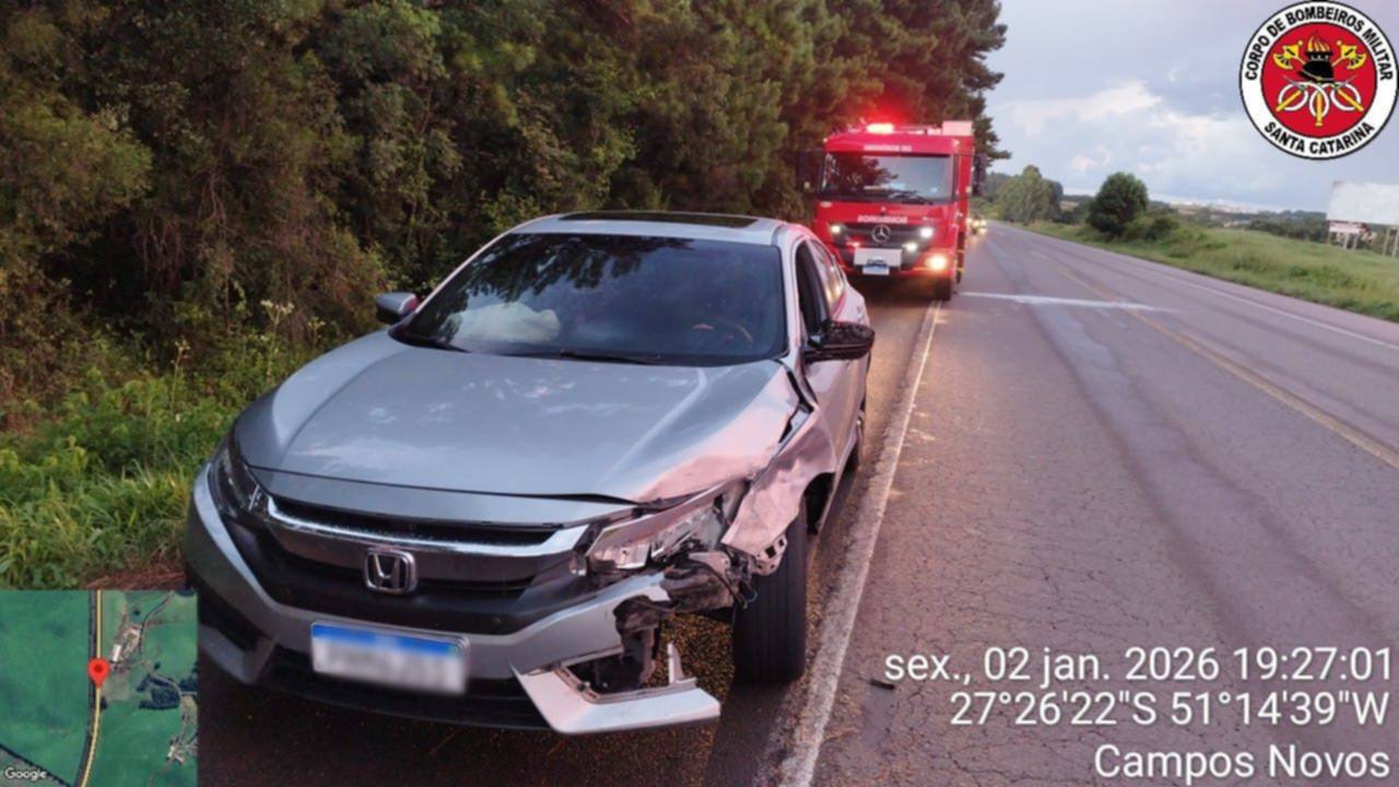 Um acidente de trânsito envolvendo dois automóveis foi registrado na noite desta quinta-feira (02), por volta das 19h10, na BR-470, nas proximidades do trevo do Ibicuí, em Campos Novos.