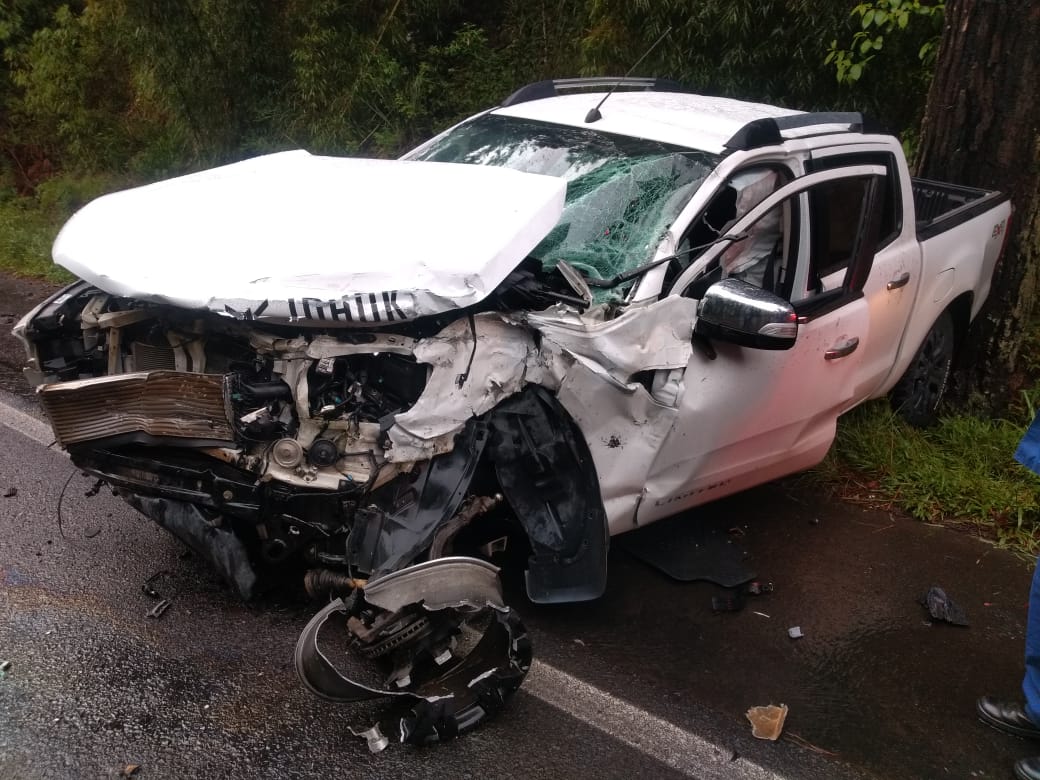 Acidente envolve caminhonete, carro e carreta na BR-470