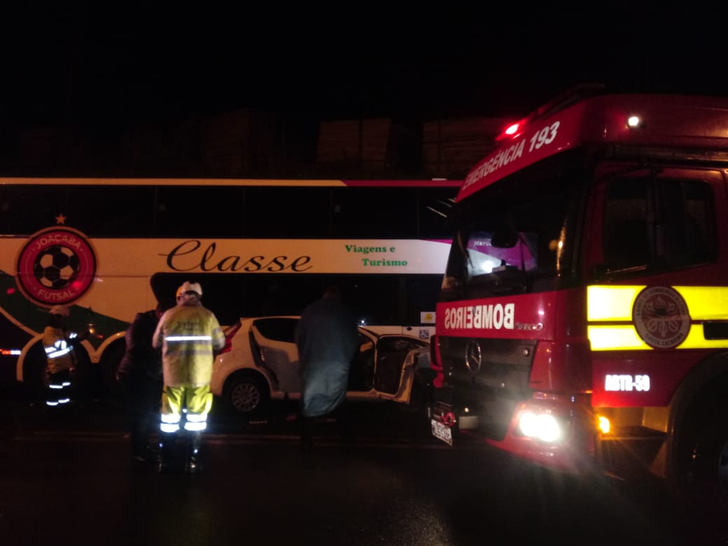 Santa Cecília – Por volta das 3h45 desta segunda-feira (12) o Corpo de Bombeiros foi acionado para atender ocorrência de acidente de trânsito na BR-116, em Santa Cecília. O fato ocorreu no km 141 da rodovia federal e envolveu um ônibus e um automóvel. No local constatada colisão frontal entre ônibus Scania Marcopolo Paradiso com placas de Joaçaba/SC conduzido por homem de 32 anos e um Fiat/Pálio com placas de Santa Cecília conduzido por homem de 26 anos.