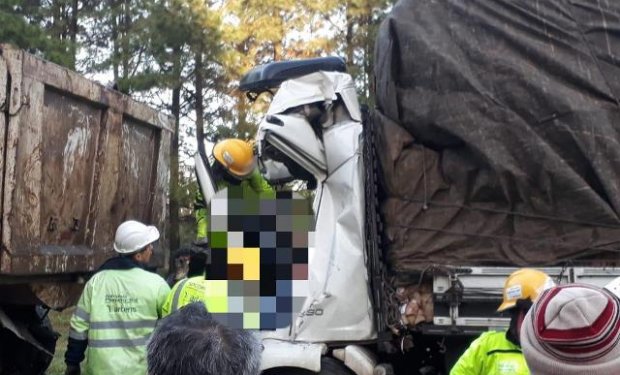 Um acidente três caminhões e um veículo de passeio matou duas pessoas e deixou mais quatro feridas. A colisão aconteceu na manhã de hoje (13), no km 113,9 da BR-116, em Santa Cecília, próximo ao frigorífico Irmãos do Valle.