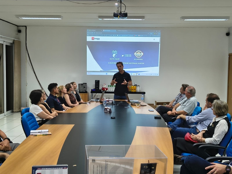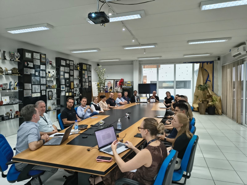 A Diretoria da ACIOC, os membros do Conselho Deliberativo, da equipe interna e dos núcleos empresariais foram recebidos pelo fundador da empresa, Jaime Scherer, e pelo diretor Eduardo Scherer Kalabaide. A pauta da reunião contemplou assuntos estratégicos, como as ações e o planejamento dos Núcleos Empresariais, os resultados obtidos pela ACIOC ao longo de 2025, eventos que aconteceram recentemente, como a inauguração do BRDE e o Prêmio Inova+, promovido pela Facisc, além da eleição conjunta para a Diretoria Executiva e o Conselho Deliberativo, que ocorrerá no dia 18 de dezembro.
