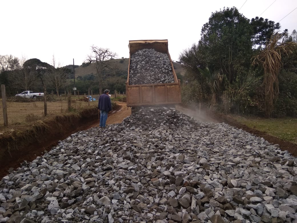 Na oportunidade estava sendo preparado para que a pavimentação do terreno que integra parte da estrada de acesso a Fazenda das Palmeiras pudesse ser realizada.
