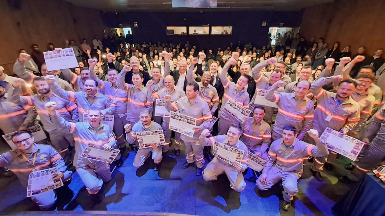 Os profissionais da Celesc que auxiliaram no restabelecimento da energia elétrica no Rio Grande do Sul foram homenageados nesta terça-feira (25) em evento realizado no auditório Milan Milasch, na Administração Central. Cada um dos eletricistas, técnicos e engenheiros que trabalharam no estado vizinho foram presenteados com placas de agradecimento e um quadro com fotos da atuação no RS. Também receberam os cumprimentos do presidente Tarcísio Rosa e de toda a diretoria da Companhia.