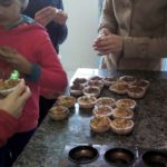 O prato principal, preparado com a participação dos alunos, foi “cupcake de legumes”. O objetivo é ter um prato colorido e de valor nutricional adequado como também incentivar os alunos a manusear os ingredientes.