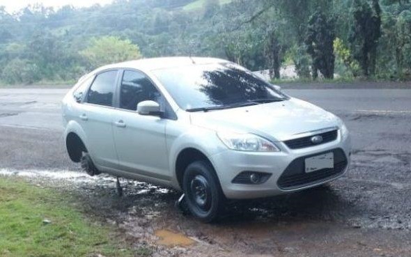 São buracos e desníveis que provocam muitos danos nos veículos.