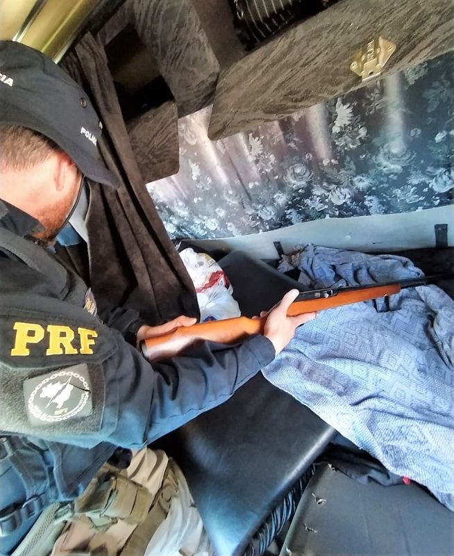Segundo informações da PRF, o homem não soube informar os detalhes da viagem e alegou que usaria a carabina para caçar.