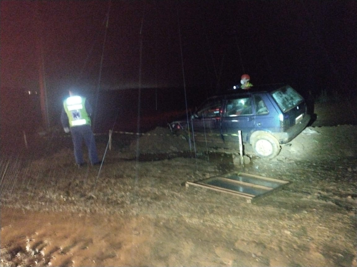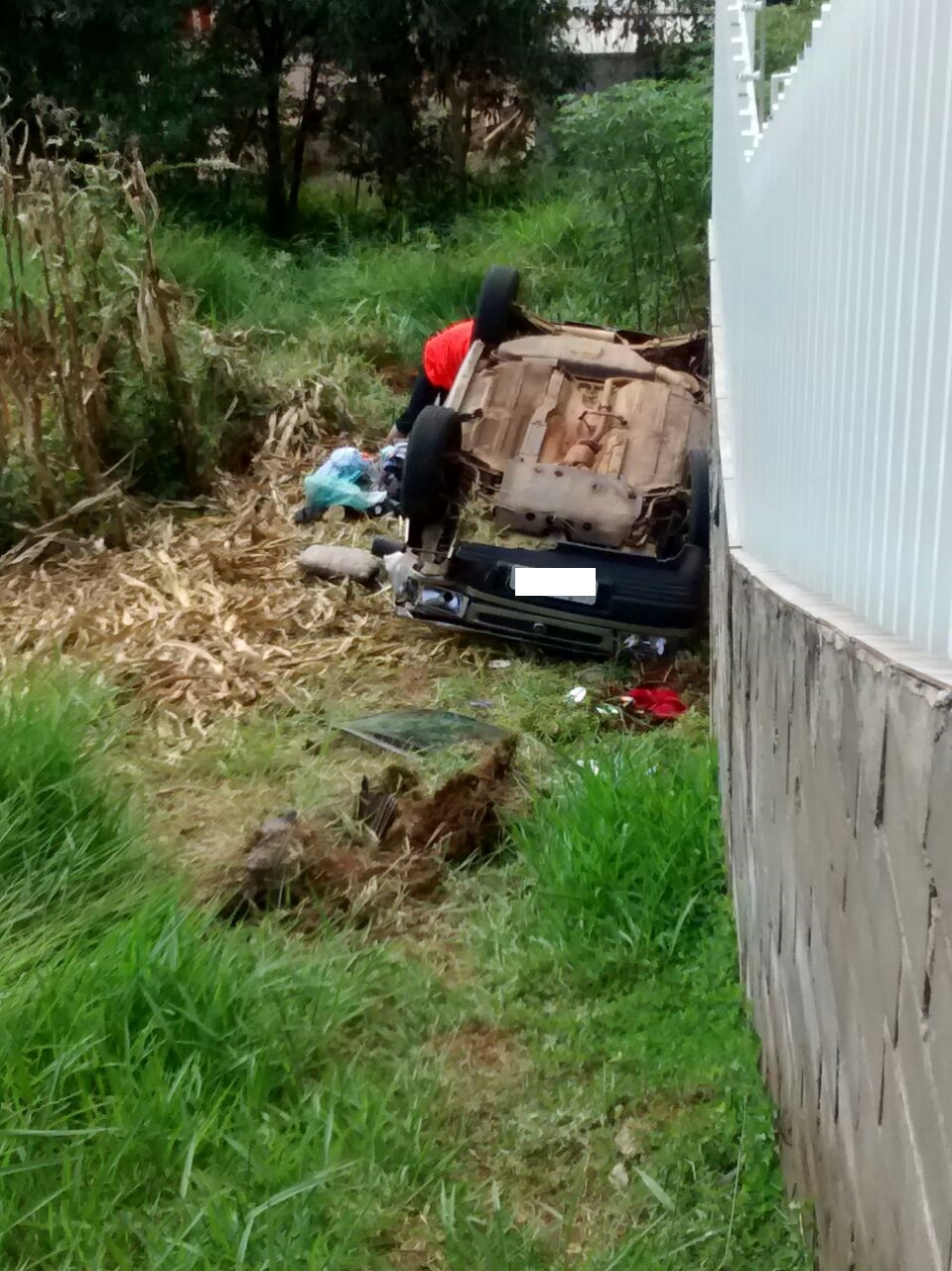 Automóvel colide em barranco em estrada de terra no interior de Fraiburgo