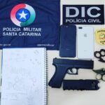 Durante as buscas foi apreendido os celulares dos autores, um simulacro de pistola, um aparelho de choque e duas armas brancas conhecidas como soco inglês.