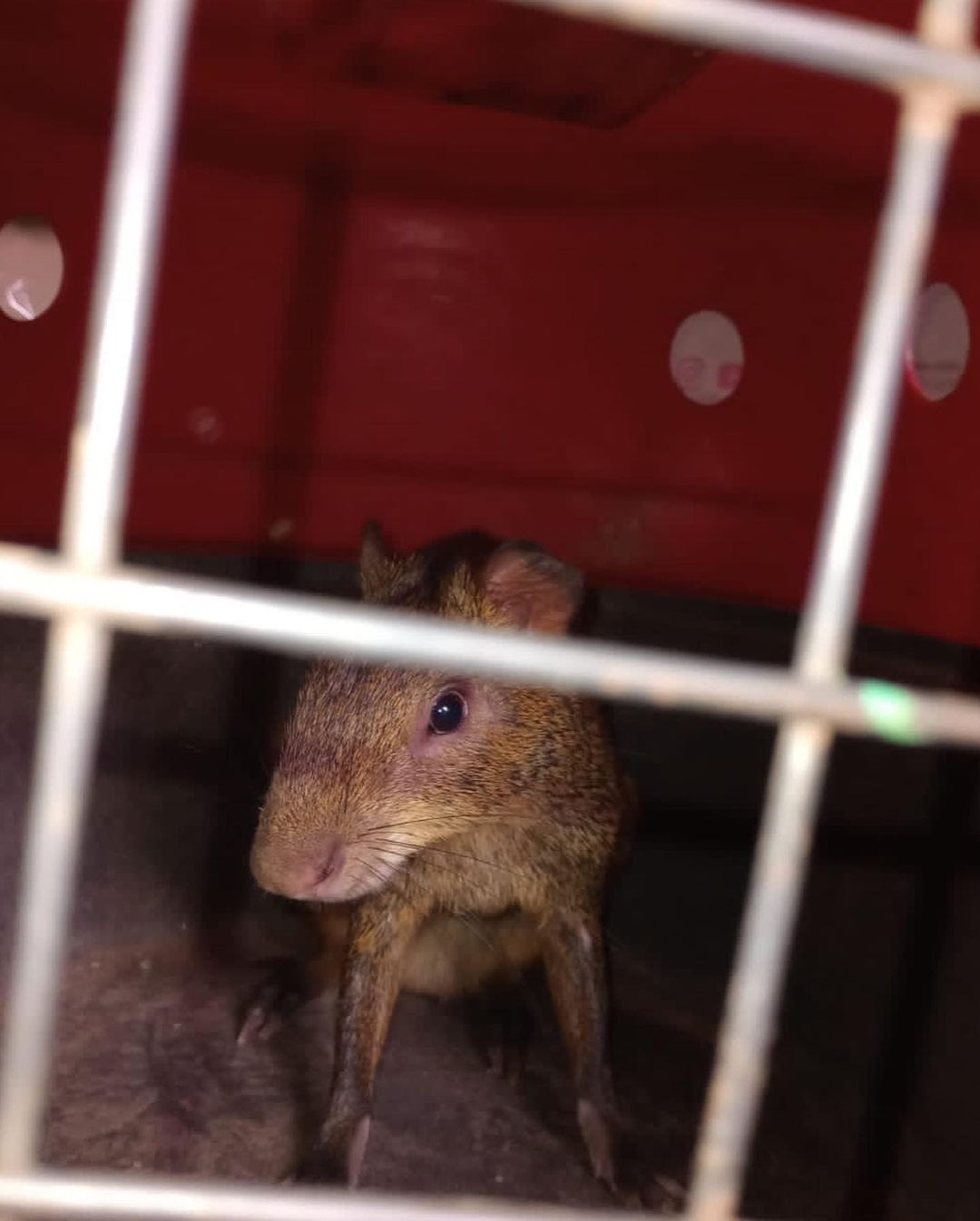Os policiais militares apanharam o roedor e, após a avaliação de um médico veterinário, a Cutia foi reinserida em seu habitat natural.