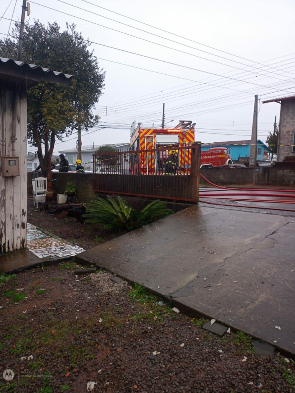 No local uma casa de estrutura mista, com predominância de madeira, apresentava foco de incêndio na área dos quartos e cozinha. As guarnições montaram duas linhas de ataque, cercando o foco e realizando o combate às chamas, preservando uma garagem ao lado e o restante dos cômodos da residência.