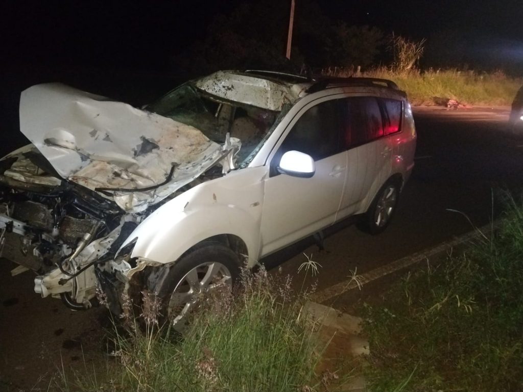 Ao chegar no local foi constatado que se tratava de acidente de trânsito tipo atropelamento de animal bovino. O condutor do veículo Mitsubishi ASX placas padrão Mercosul, havia sido conduzido por populares até a unidade de saúde. O animal encontrava-se as margens da Rodovia em óbito. O local do acidente ficou aos cuidados da Polícia Militar Rodoviária.