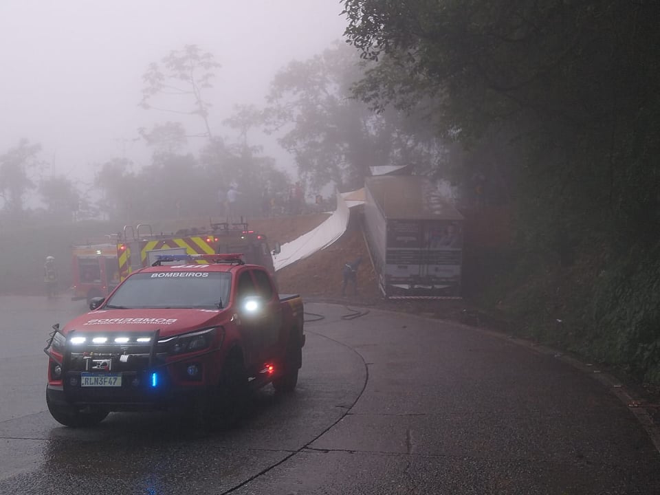 Um bombeiro militar de Rio Negrinho que passava pelo local, fez o primeiro atendimento antes da chegada da guarnição e conseguiu amarrar a cabine ao baú do caminhão, fazendo uso de cintas, do tipo de amarrar cargas, evitando que continuasse deslizando barranco abaixo.