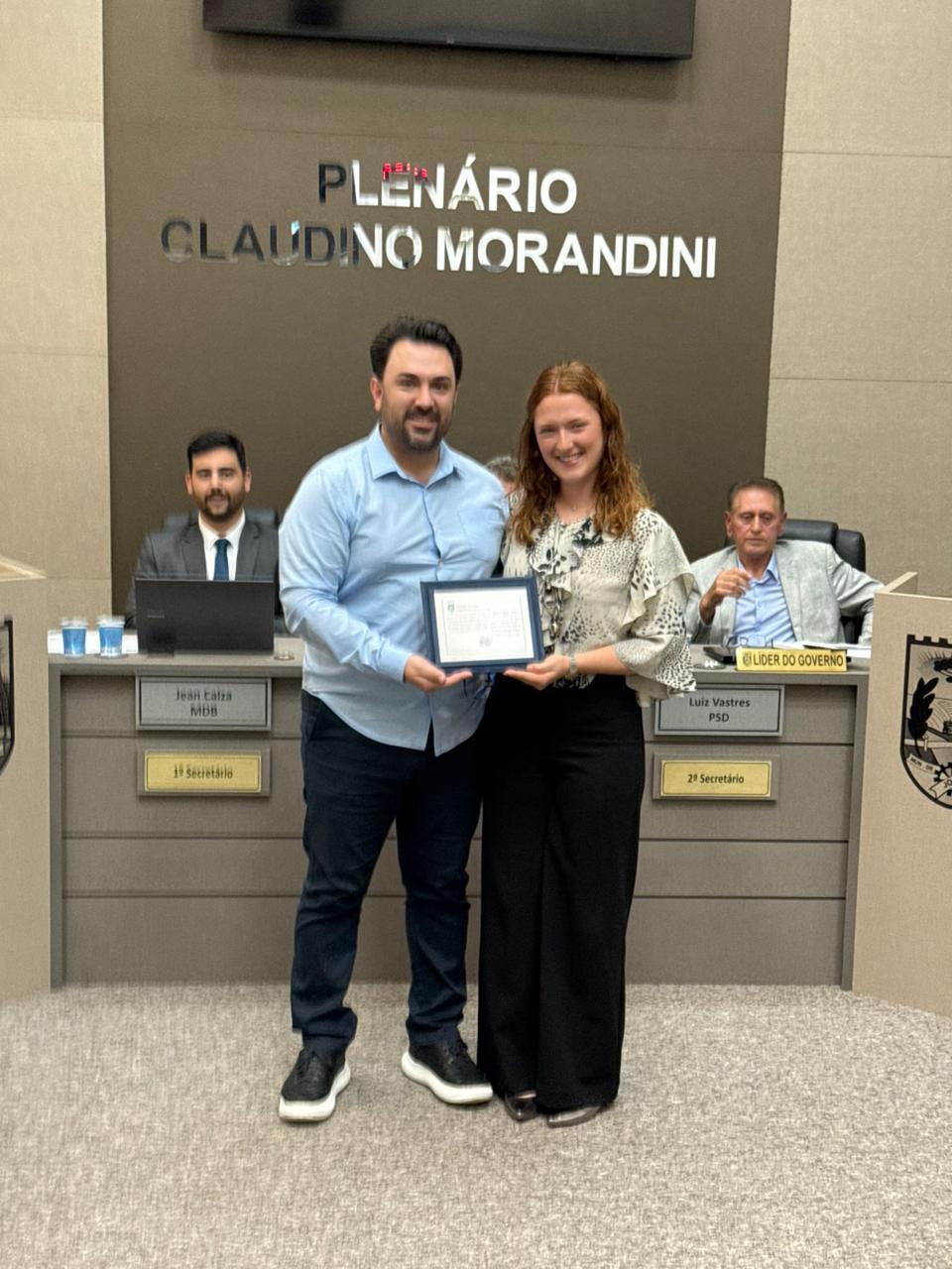 Moinho Specht: a trajetória do Moinho Specht começou quando o casal Ludwig e Luize Specht chegaram à Joaçaba – que na época se chama Cruzeiro do Sul – vindos da Alemanha em 1922. Alguns anos depois Ludwig precisou retornar à Alemanha e trouxe para o Brasil uma pequena serraria e um moinho. Ao longo do tempo, o tímido empreendimento deu lugar a uma empresa sólida que se destaca não apenas em Joaçaba e Santa Catarina mas, sim no Brasil. Indicada pelo presidente da Casa Legislativa, Diego Bairros, a empresa foi homenageada com uma Moção de Aplauso entregue a Beatriz Fett Behrend, que representa a quinta geração da família que segue gerindo os negócios da empresa.