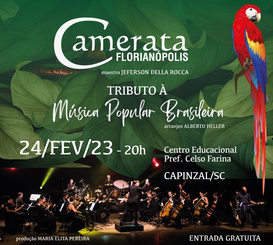 Capinzal – Integrando a programação de aniversário de 74 anos, comemorados no último dia 17, outra grande atração acontecerá nesta sexta-feira (24). Será a apresentação da Camerata Florianópolis, a partir das 20h no Centro Educacional Prefeito Celso Farina. O tributo à Música Popular Brasileira terá entrada é gratuita.