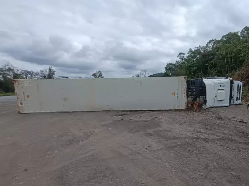 Um caminhão capotou na tarde desta quinta-feira (25) na BR-470, em Pouso Redondo, na altura da Serra da Santa. O acidente ocorreu por volta das 15h44 e mobilizou equipes de resgate do Corpo de Bombeiros Militar.