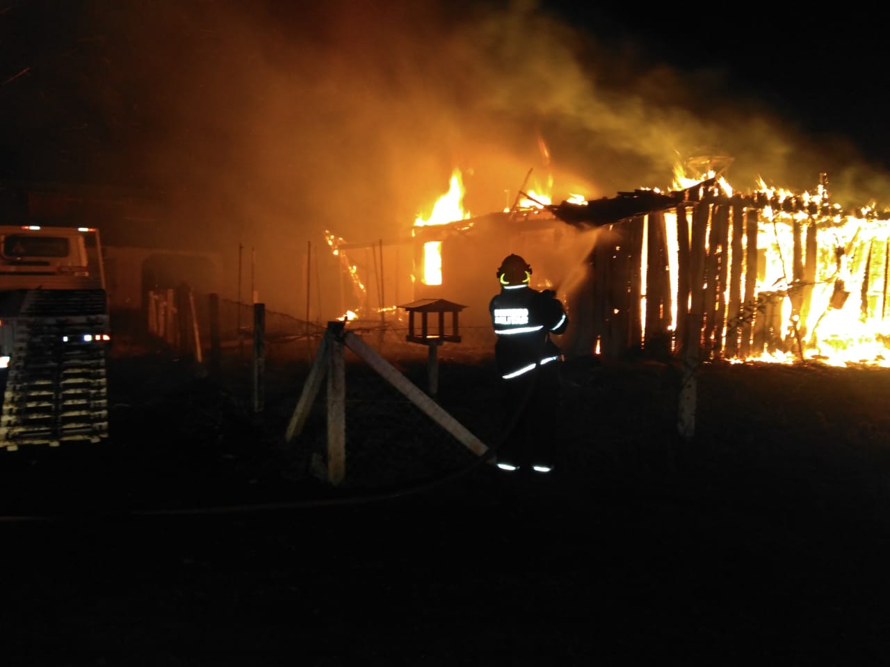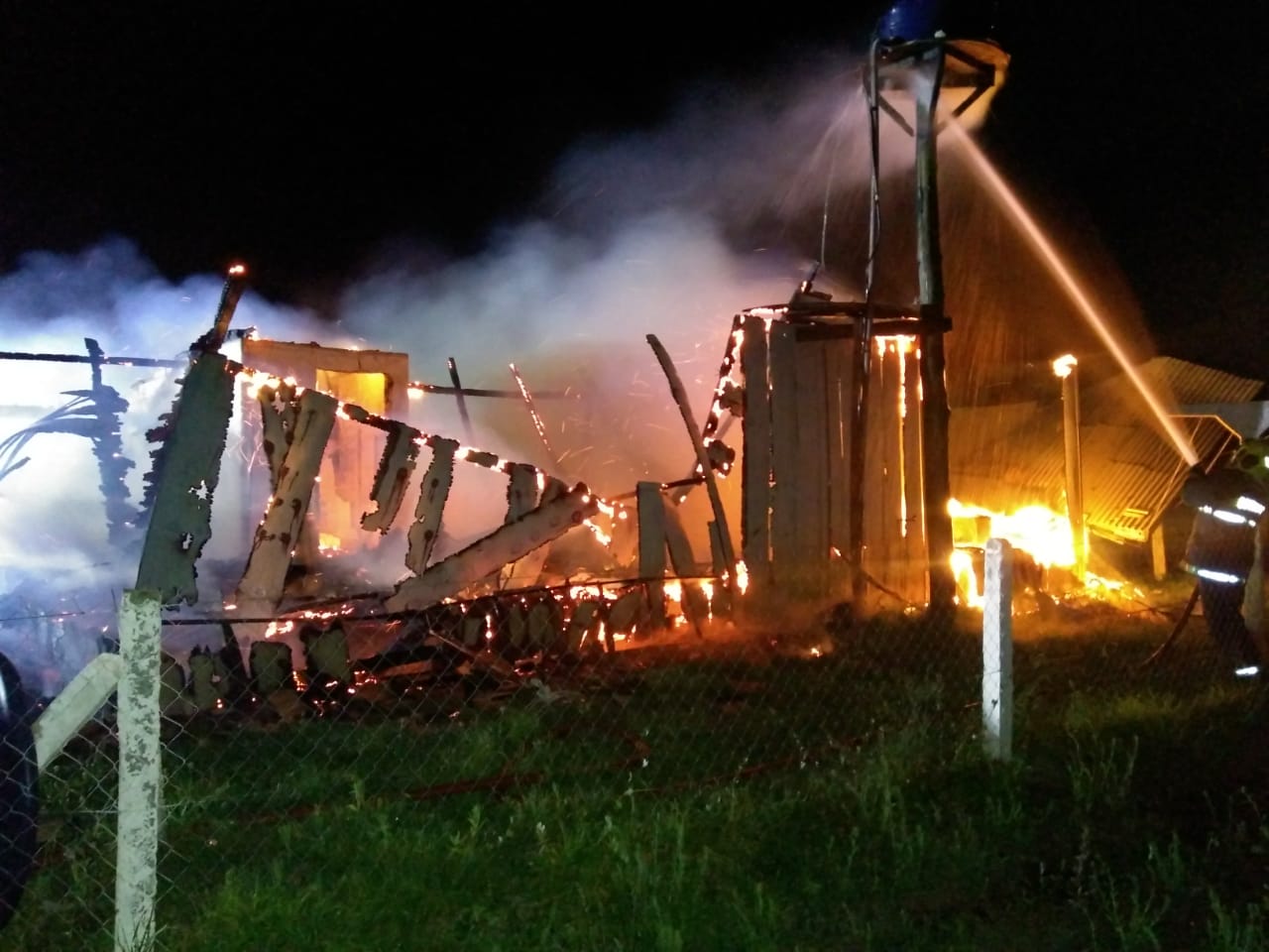 Curitibanos – Por volta das 23h deste domingo (21) o Corpo de Bombeiros de Curitibanos foi acionado para ir até a área industrial às margens da BR-470, onde foi constatado incêndio em residência de construção mista (madeira e alvenaria) de área construída de aproximadamente 64 metros quadrados, totalmente tomada pelas chamas.