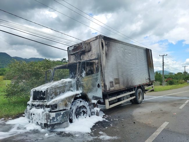 Na tarde desta sexta-feira (17), um caminhão pegou fogo na rodovia SC-110. O caso ocorreu em Jaraguá do Sul, norte catarinense, na região do bairro Rio Cerro I.