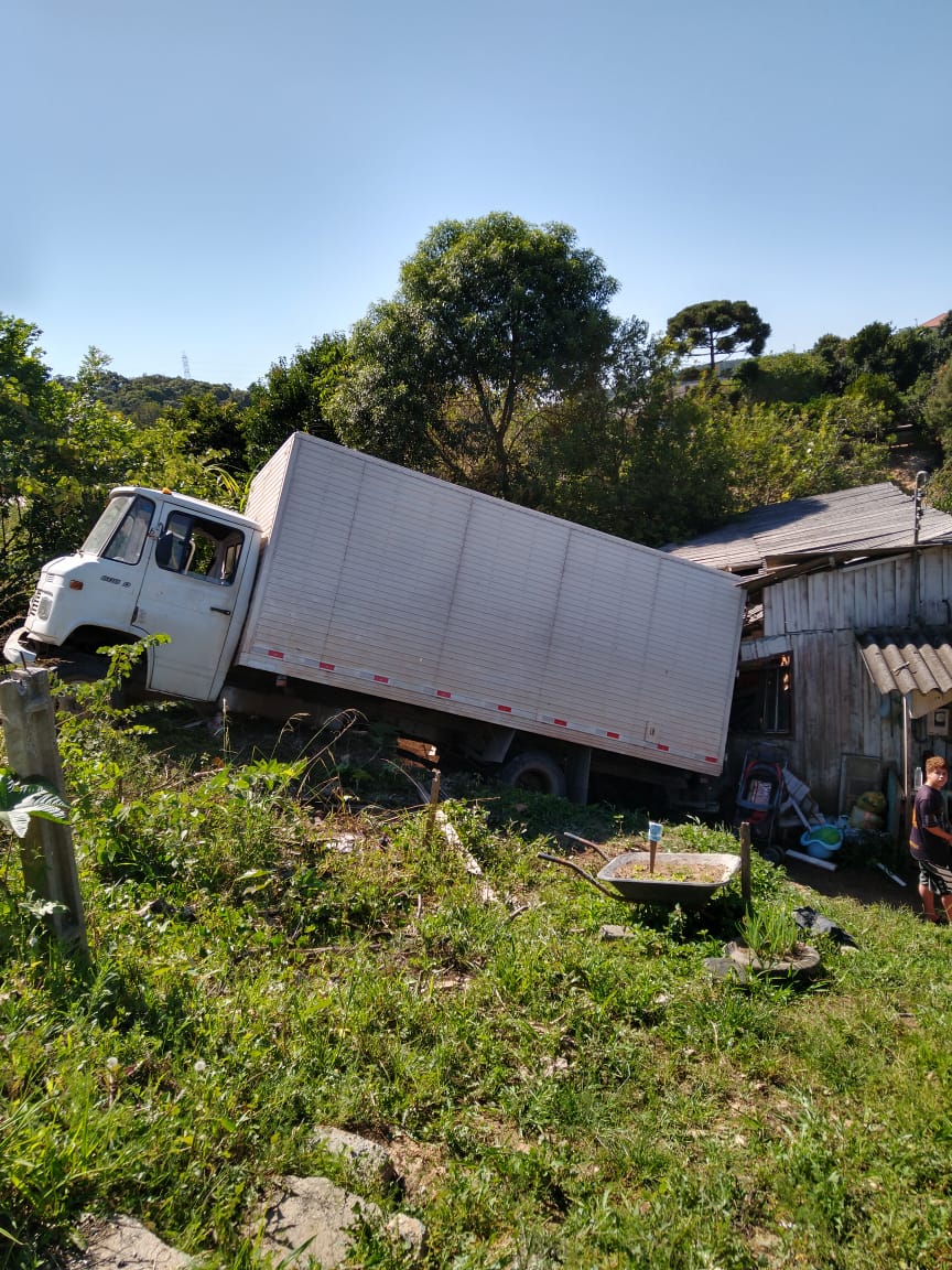 Rio Negrinho – Um caminhão atingiu uma casa por volt adas 15h desta quinta-feira (12) em Rio Negrinho, no Planalto Norte. Bombeiros foram chamados e constataram veículo Mercedes-Benz com placas do Paraná conduzido por um homem de 32 anos (que nada sofreu, ficando com a PM no local), enquanto seu ajudante de 18 anos, foi encontrado consciente e orientado deambulando na cena.
