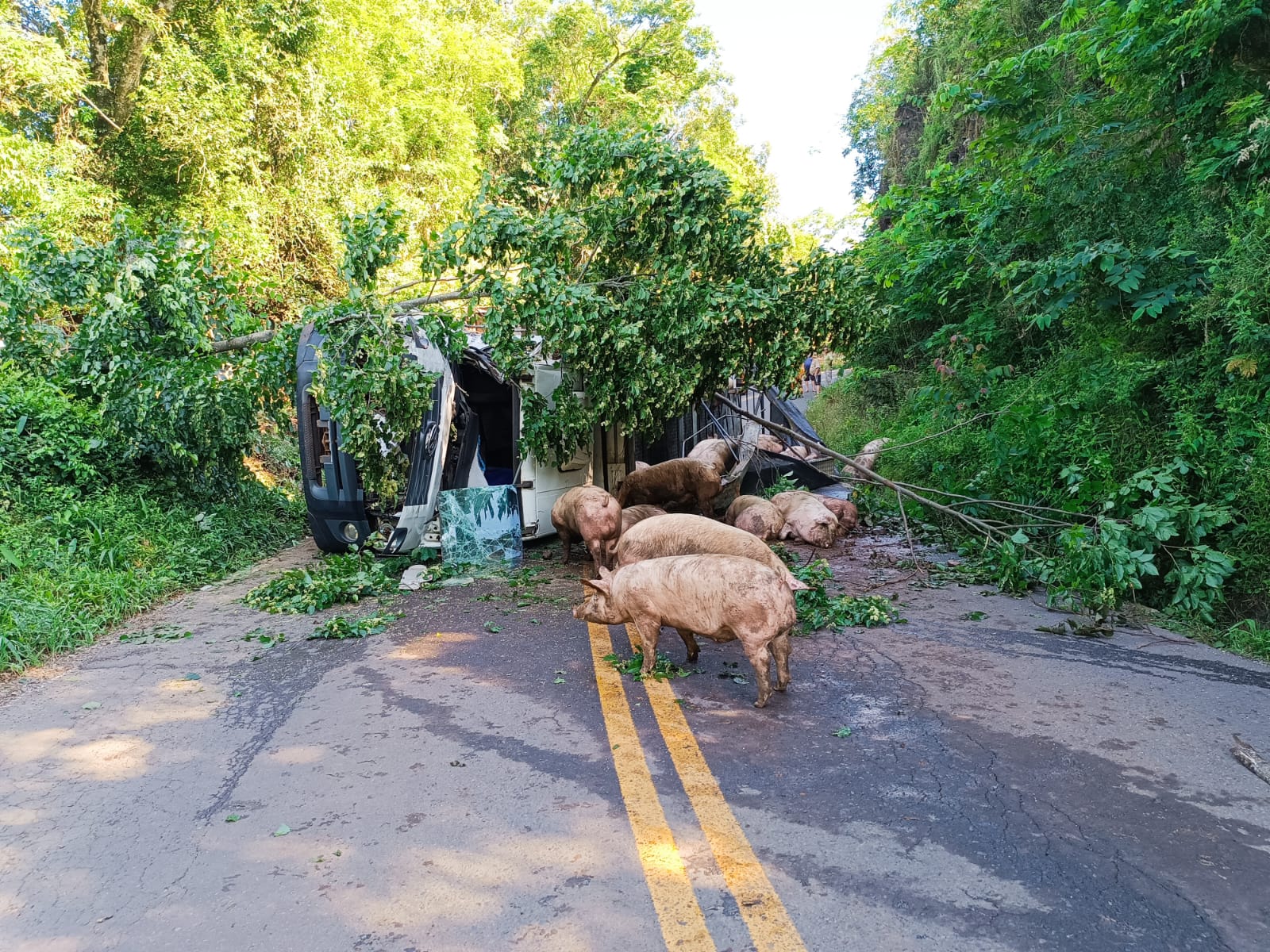 Relatou ser carona no veículo que por pane nos freios veio a deslocar-se em marcha ré, saindo da rua causando o acidente. Disse ainda que não usava cinto de segurança tendo saltado do caminhão. Reclamava de dores na clavícula direita e no cúbito (mesmo lado) onde havia escoriação. Após atendimento pré-hospitalar, conduzido para a Unidade de Pronto Atendimento.
