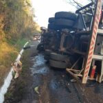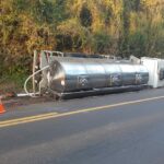 Descanso – Um caminhão leiteiro tombou na manhã desta segunda-feira (09) na BR-282 em Descanso, no Oeste do Estado. Segundo as informações da Polícia Rodoviária Federal, o acidente ocorreu no km 631 da rodovia. Não houve feridos. O veículo, um Mercedes-Benz com placas de São João do Oeste (SC) ficou lateralizado na pista.