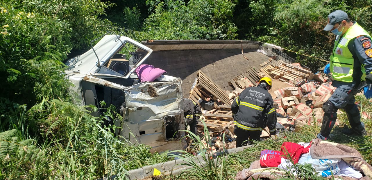 Videira – Por volta das 11h30min deste domingo (22) o Corpo de Bombeiros e o SAMU de Videira foram acionados para atender a um acidente de trânsito no km 128 da SC-135 em Videira, sentido Pinheiro Preto. No local foi constatada uma saída de pista seguida de capotamento envolvendo um caminhão Volkswagen que era conduzido por um homem de 23 anos residente de Fraiburgo/SC. Ele encontrava-se fora do veículo, consciente e orientado, sendo este retirado por populares. Na avaliação referiu perda de memória temporária e dor no peito com dificuldade de respirar.