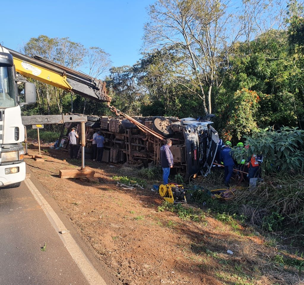 Xanxerê – Um caminhão tombou às margens da BR-282 em Xanxerê, no Oeste catarinense. Segundo informações da Polícia Rodoviária Federal (PRF) e do Corpo de Bombeiros, uma vítima ficou preso às ferragens. O acidente aconteceu na manhã desta quarta-feira (24).