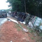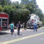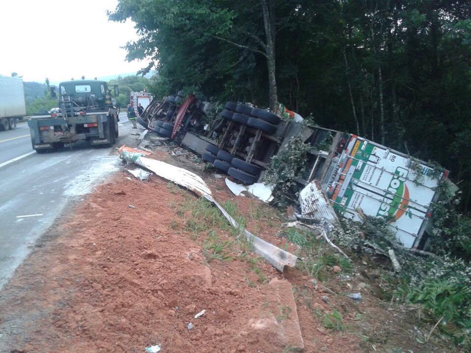 Envolveu um caminhão Volvo com placas de Ibiporã-PR carregado de peras importadas. No momento do acidente o pai que era o motorista trocou de lugar com o filho. O filho Rafael Artismo de Oliveira, 26 anos foi socorrido e passa bem, já o pai ficou prensado nas ferragens e morreu no local, identificado como Valdecir de Oliveira, 58 anos.
