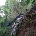 Campos Novos – Por volta das 17h30min o Corpo de Bombeiros de Campos Novos foi acionado para atender a um acidente de trânsito na BR-470 na divisa com Barracão (RS). No local as guarnições constataram uma saída de pista seguida por choque no guard-rail e queda aproximada de 50 metros em ribanceira.