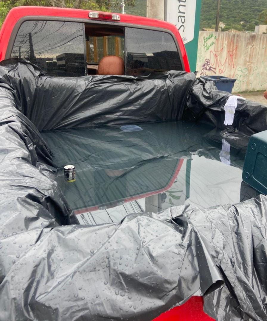 Um condutor de uma caminhonete Ford F250 foi flagrado na tarde desta quarta-feira (31), transportando passageiros em uma piscina improvisada na caçamba do veículo. A cena inusitada foi registrada na rodovia SC-404, na região da Lagoa da Conceição, em Florianópolis, no Litoral catarinense.