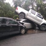 Por volta das 8h45 desta quarta-feira, 22, uma colisão traseira gerou grande transtorno na BR-470. Com a batida, cinco veículos se envolveram no acidente, incluindo uma camionete que ficou por cima de um automóvel de passeio. O acidente ocorreu no quilômetro 195, em Pouso Redondo.