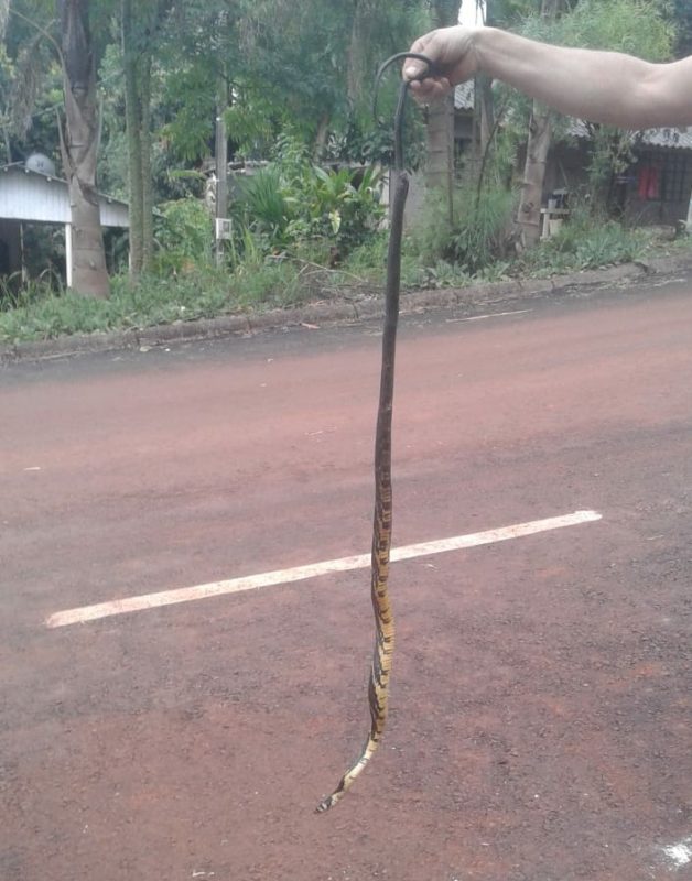 Após verem a serpente, os moradores acionaram o Corpo de Bombeiros que realizou a captura da espécie, identificada como uma caninana – possui características na América do Sul e em Trinidad e Tobago.