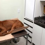 O cão, sem raça definida, foi levado à clínica veterinária Vetcenter em Timbó. Ele foi medicado, passa bem e está à espera de adoção para um novo lar.