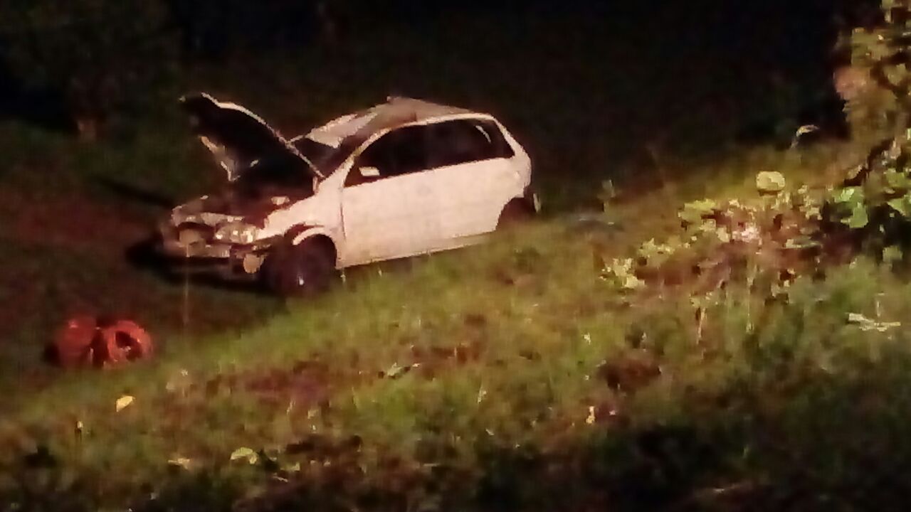O Corpo de Bombeiros foi acionado e encontrou o veículo no barranco e o condutor desorientado apresentando suspeita de traumatismo cranioencefálico. O carona apresentava ferimentos no rosto e suspeita de fratura no nariz.