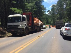 Conforme informações, o caminhão fazia o trajeto de Rio das Antas para Caçador, quando ao entrar na curva, a carga de tijolos pendeu para a esquerda e com isso estourou uma cinta que amarrava a carga. Parte da carga caiu sobre a Toro que seguia no sentido contrário.