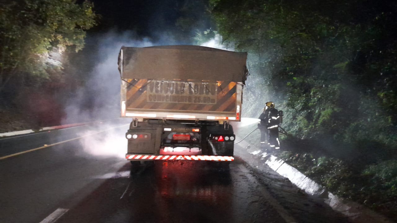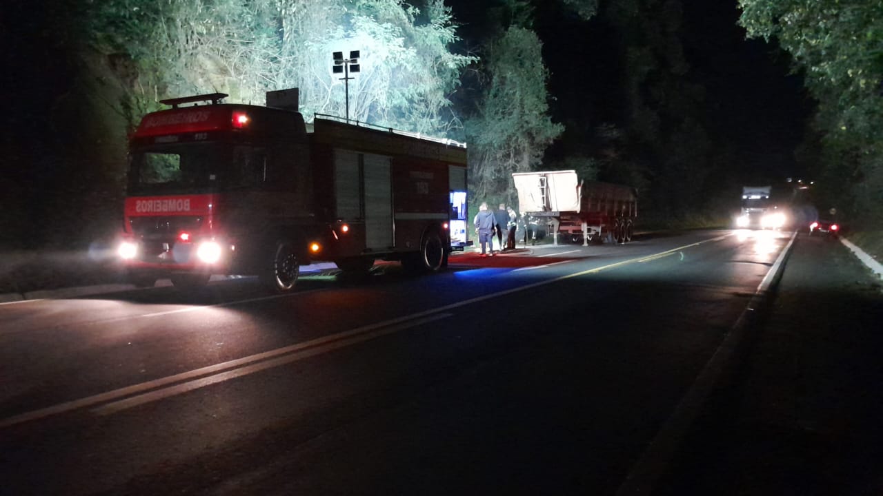 Conforme os bombeiros, o fogo iniciou no lado direito do veículo nos rodados da carreta e rapidamente o condutor e outros caminhoneiros que pararam prestar os primeiros atendimentos efetuaram procedimentos de combate usando de extintores e terra que cavaram no barranco e usaram para tentar abafar o fogo.