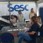 A secretária convida a população para fazer ao cadastro. Ela considera que a saúde bucal é muito importante, pois é onde iniciam os cuidados de saúde. A carreta do Odonto SESC atua há 18 anos na região. No total são quatro carretas em todo o estado.