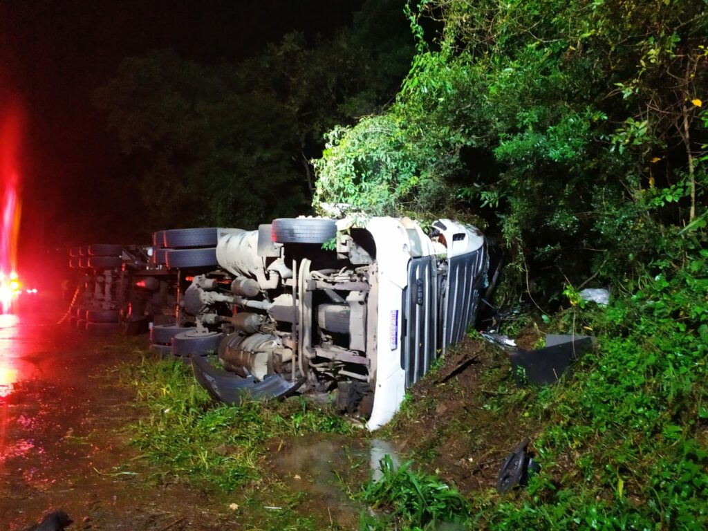 O corpo de bombeiros militar de Catanduvas atendeu ocorrência de acidente de trânsito na BR 282, interior de Vargem Bonita, na localidade conhecida como Curva da Madezatti, onde o motorista da carreta teve que ser desencarcerado.