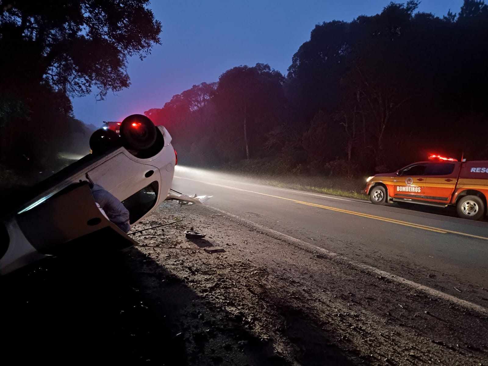São Cristóvão do Sul – Por volta das 6h10 desta quarta-feira (29) uma saída de pista seguida de capotamento foi registrada na BR-470, em São Cristóvão do Sul. O Corpo de Bombeiros de Curitibanos foi acionado e, na altura do quilômetro 230, região próxima ao trevo de acesso a Monte Alegre, encontrou um GM/Celta placas Mercosul capotado com os rodados para cima.