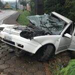 Capinzal – Capinzal – Um violento acidente de trânsito foi registrado no início da tarde desta quarta-feira (18) no Acesso Cidade Alta, próximo ao trevo de acesso à Vila Sete de Julho, em Capinzal. O fato foi por volta das 13h e envolveu um automóvel VW/Golf com placas de Capinzal conduzido por L.D., 22 anos.