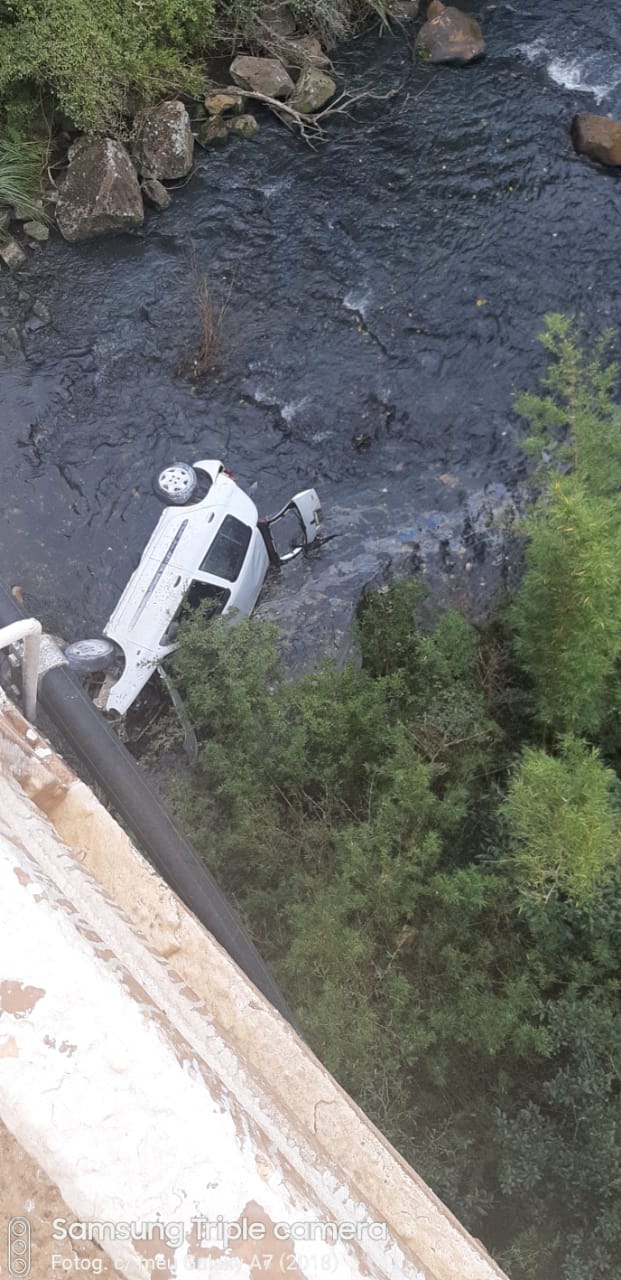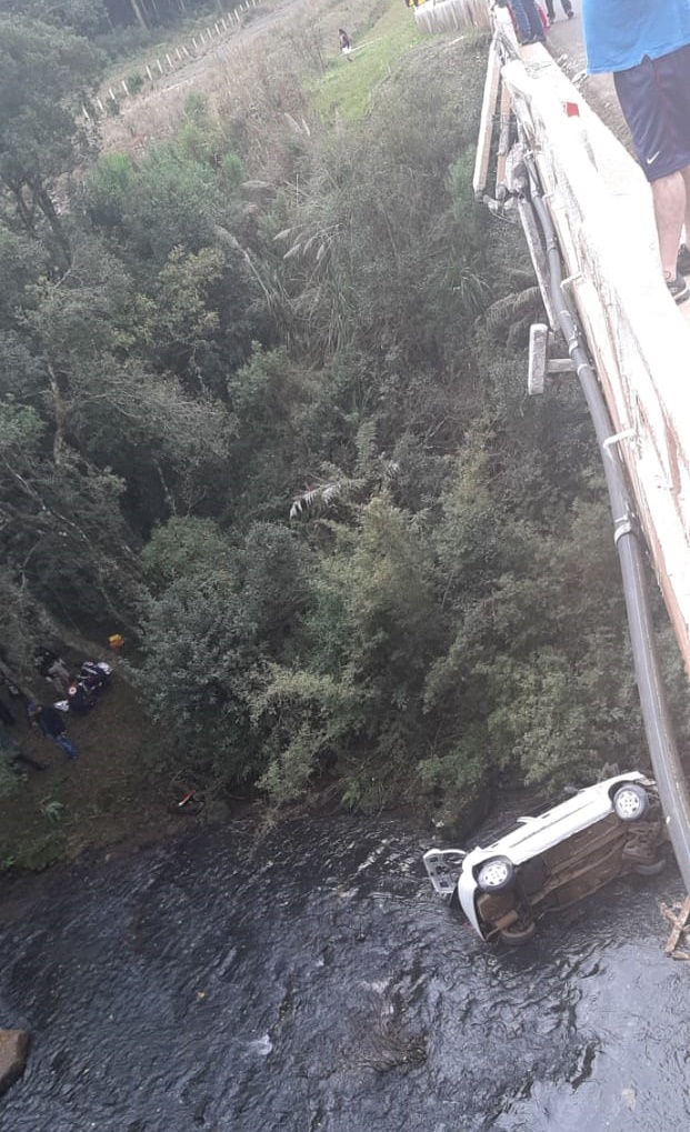 São José do Cerrito – Um automóvel caiu de uma ponta na tarde deste domingo (30) na BR-282 em São José do Cerrito, na Serra catarinense. O acidente envolveu um Renault Clio com placas de Pinhal/RS. Segundo as informações, o veículo bateu na mureta da ponte sobre o Rio Lajeado da Taipa e despencou na água.