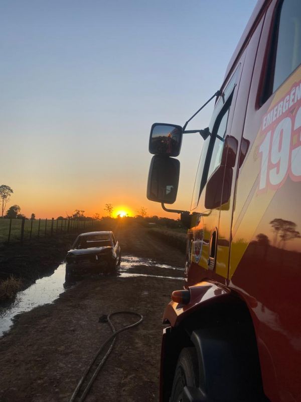 Ao chegarem ao local, por volta das 16h51, os bombeiros constataram um incêndio de grandes proporções em um veículo Ford/Fiesta, de cor branca, pertencente à prefeitura do município. As chamas também tiveram se alastrado pela vegetação rasteira às margens da rodovia, aumentando a complexidade da situação.
