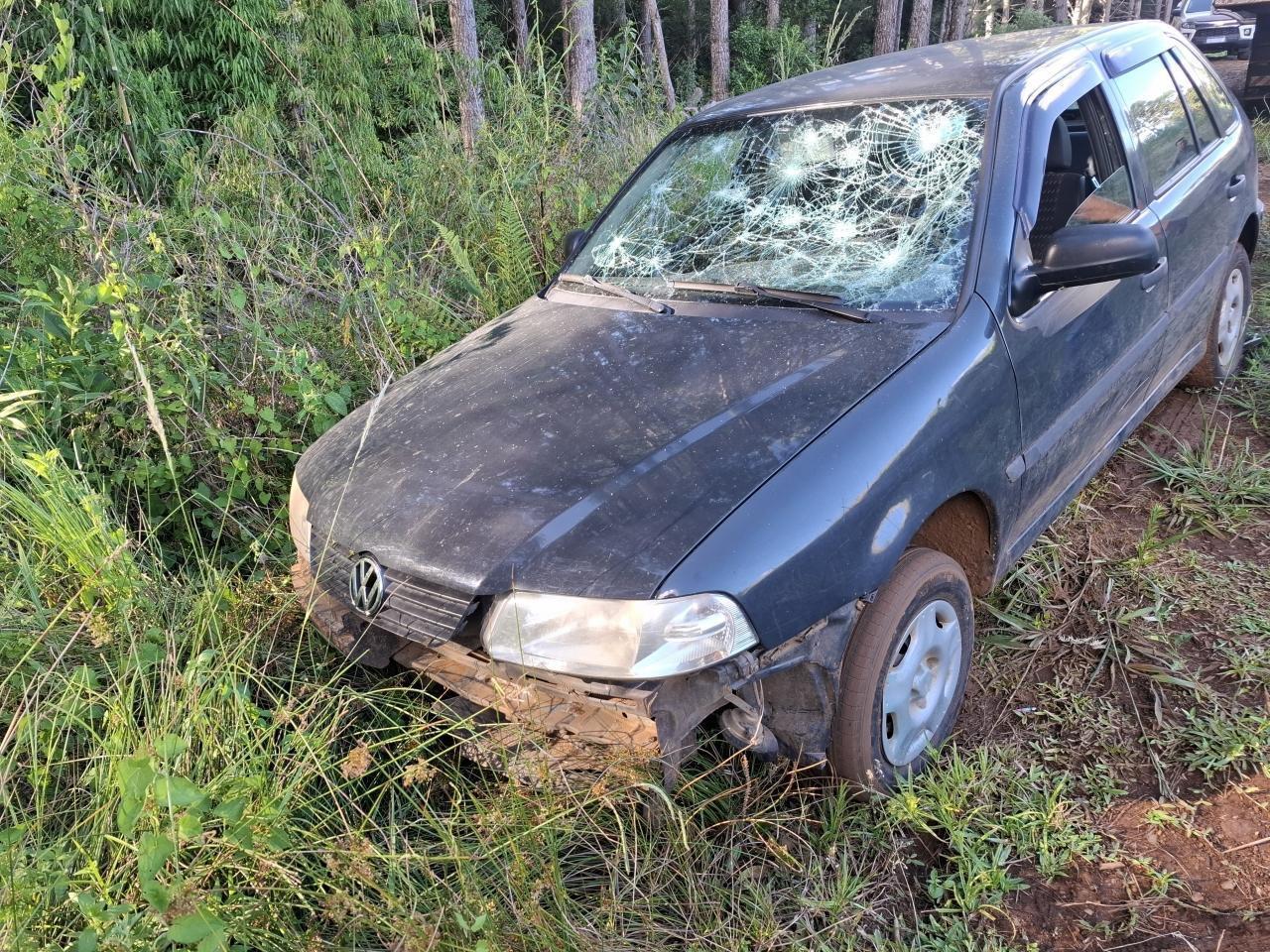 A guarnição foi informada de que um veículo VW/Gol que havia sido furtado na sexta-feira (26) em frente à residência do proprietário, também localizada no município de Água Doce, estaria abandonado nas proximidades de uma bifurcação da estrada geral do Rio do Mato, em local de difícil acesso.